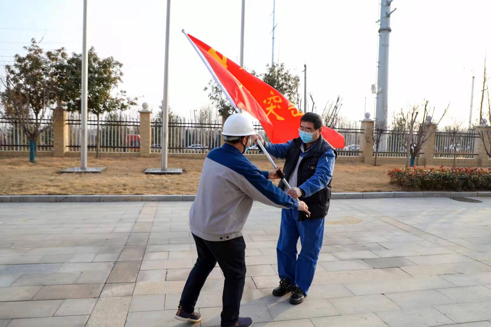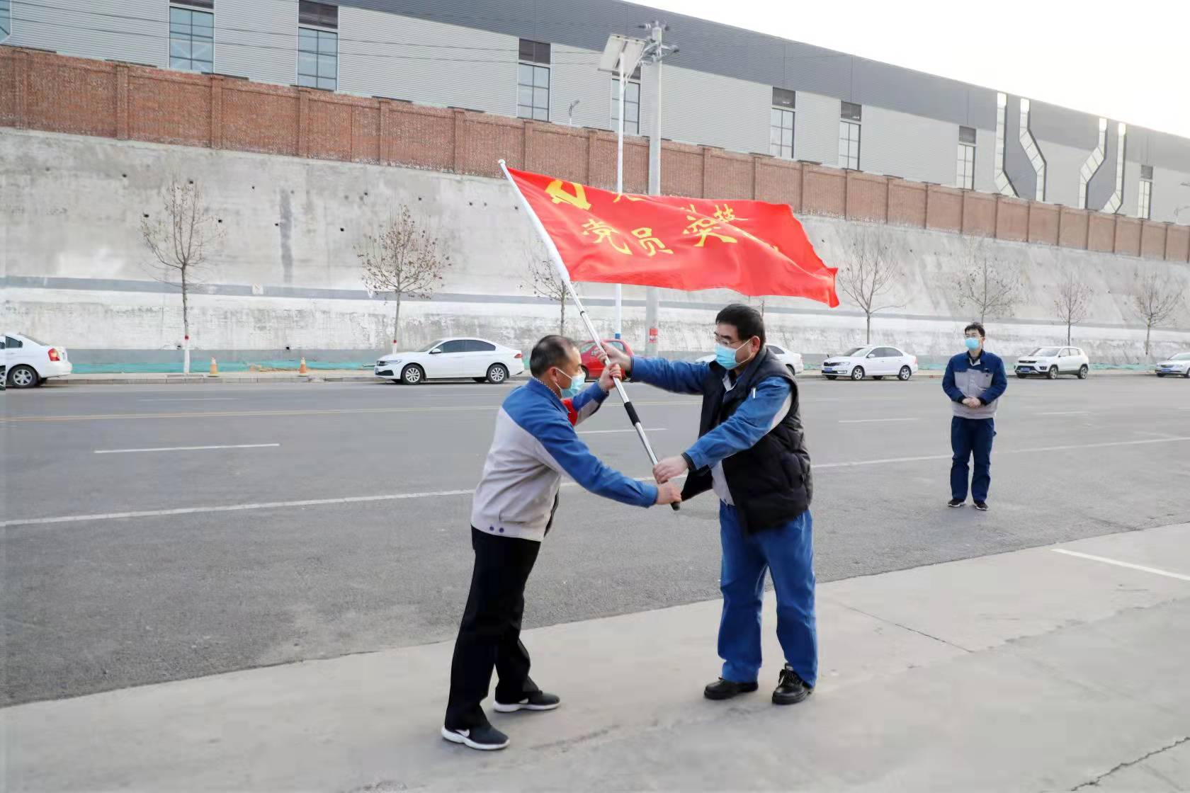 1月14日下午,安彩高科疫情防控黨員突擊隊(duì)授旗儀式在各子公司疫情防控點(diǎn)舉行,黨委書記、副總經(jīng)理陳志剛為安彩高科、光伏新材料、光熱科技、安彩燃?xì)狻膊誓茉次鍌€(gè)公司授黨員突擊隊(duì)旗。