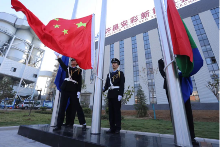 在升旗儀式上,許昌安彩董事長(zhǎng)楊建新向在項(xiàng)目建設(shè)中給予支持幫助的各位領(lǐng)導(dǎo)、辛勤付出的各位同事及家屬表示衷心的感謝。他表示,許昌安彩的建設(shè)者們?cè)诠绢I(lǐng)導(dǎo)的正確指引下,頂住壓力、爭(zhēng)分奪秒,終于實(shí)現(xiàn)滿產(chǎn)達(dá)效,跑出安彩項(xiàng)目建設(shè)新速度。截至目前,公司各項(xiàng)工序運(yùn)轉(zhuǎn)正常,各項(xiàng)指標(biāo)均達(dá)到并超過(guò)科研設(shè)計(jì)水平。這張來(lái)之不易的“成績(jī)單”是所有許昌安彩人拼出來(lái)、干出來(lái)的,是落實(shí)安彩高科“一核四極”發(fā)展戰(zhàn)略、傳承安彩“十大精神”的集中體現(xiàn)。我們將堅(jiān)持黨建領(lǐng)航、文化鑄魂,以高質(zhì)量黨建推動(dòng)企業(yè)高質(zhì)量發(fā)展,堅(jiān)決貫徹安彩高科指示,推動(dòng)一期項(xiàng)目穩(wěn)定盈利,加快二期項(xiàng)目盡快落地,以?xún)?yōu)異成績(jī)?yōu)樽鎳?guó)慶生、為黨的二十大獻(xiàn)禮。