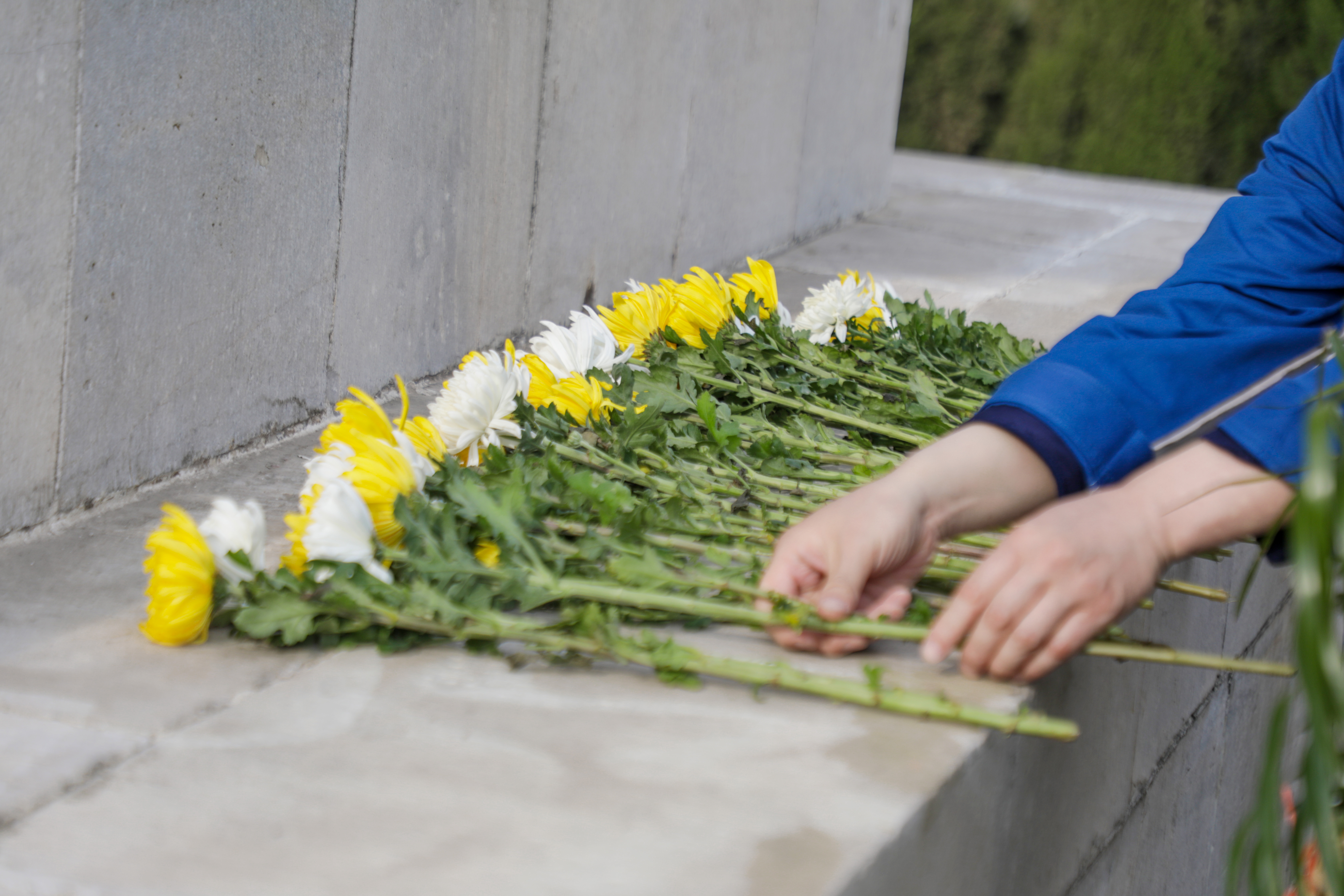 禮畢,全體人員依次前往紀念碑敬獻鮮花,向革命英烈致以崇高的敬意。